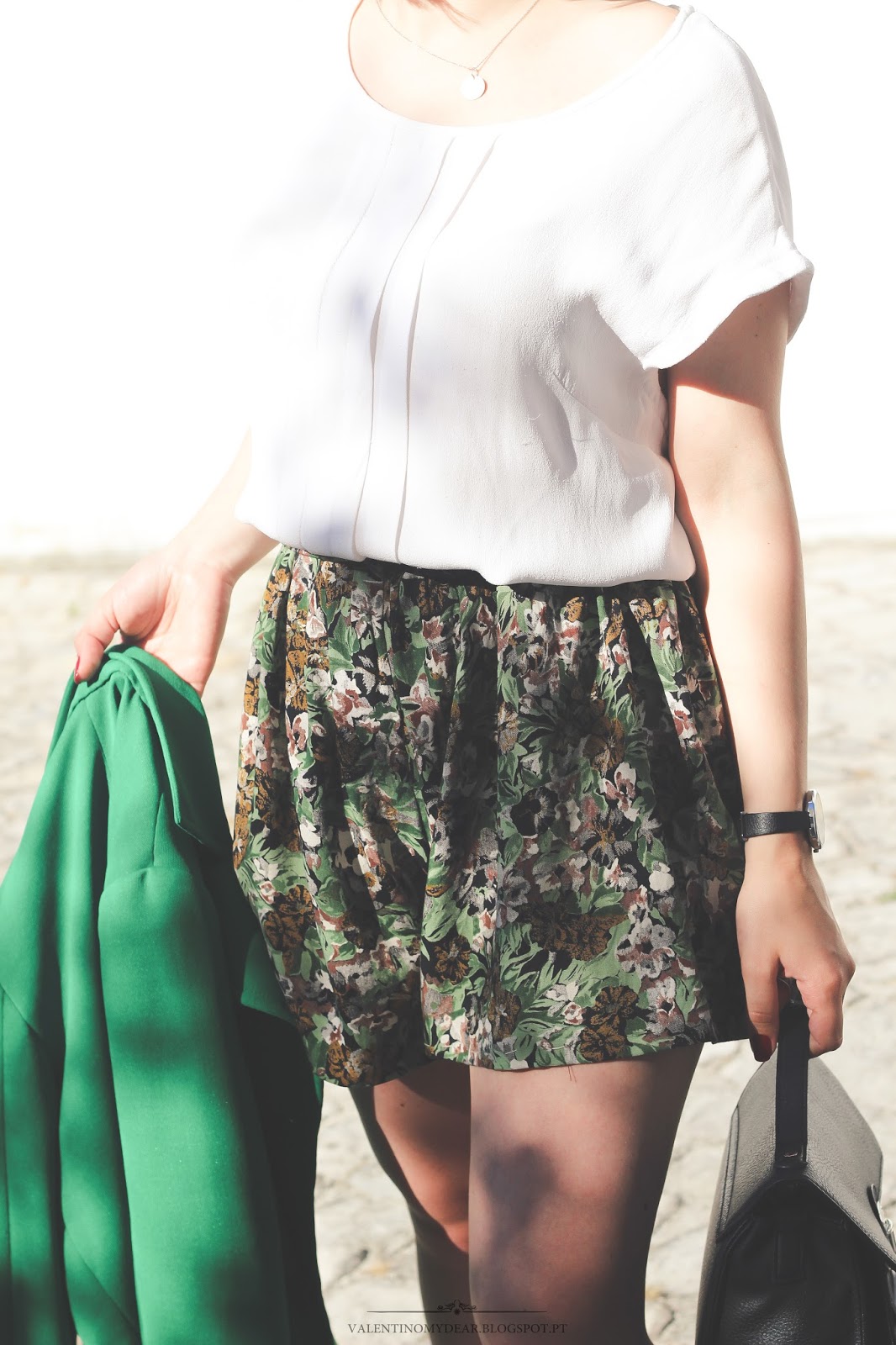 Como vos tinha falado na página do facebook, hoje era suposto ter-vos trazido as compras que fiz nos saldos - no entanto, porque o queria fazer de modo diferente e não tinha tempo, trouxe-vos um outfit. Neste outfit as únicas coisas que foram compradas foram a mala e as sandálias sendo tudo o resto coisinhas feitas pela minha avó - que talento! - muito antes de eu ser nascida. Nestes dias de mais calor se há coisa que eu não tenho conseguido suportar no meu corpo são jeans e, por isso, tenho optado todos os dias por calções ou vestidos - já que não gosto de me ver com saias. Estes parecem uma e adoro-os pelo padrão e pelo facto de serem larguinhos e esvoaçarem com o vento - tornam-se super fresquinhos! As sandálias já não saíam do armário há 2 anos mas, com as lace up em voga agora em 2015 decidi dar-lhes uma oportunidade já que me fazem lembrar alguns modelos. A moral da história? Nunca te desfaças das coisas que já não usas pois um dia voltarás a gostar delas como gostaste da primeira vez.