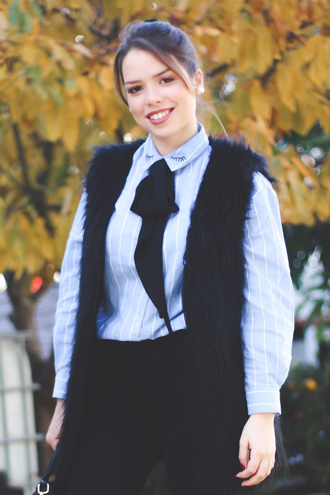 Sou só eu que não me sinto em Dezembro nem perto do Natal dados os 18º/20ºC que se fazem sentir lá fora? Parece que este ano andar pelos centros comerciais não tem a mesma graça, que as músicas de Natal nem se ouvem, que a cidade está morta. Para mim Natal significa luzinhas nas ruas, músicas de cantarolar, roupas quentinhas, pessoas nas ruas e a família à mesa mas, de facto, este ano parece que nada disso me está a chegar. Por isso mesmo, a catorze dias do Natal chegar, ando assim - em pouco mais que mangas de camisa. Esta foi enviada pela Zaful e posso dizer que adorei totalmente! Azulinha como gosto, com riscas brancas como não poderia deixar de ser e com um pormenor de umas pestaninhas mega fofas na gola - eu e os pormenores, os pormenores e eu...